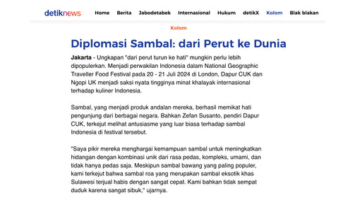 Detik.com article about Sambal diplomacy - one of the largest Indonesian media.