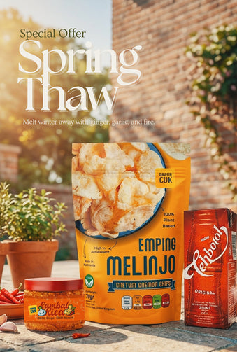 We’ve paired the addictive, bitter-sweet crunch of Emping Melinjo with the vibrant ginger-garlic heat of Sambal Rica. Plus, we're throwing in the ultimate fire extinguisher on the house.